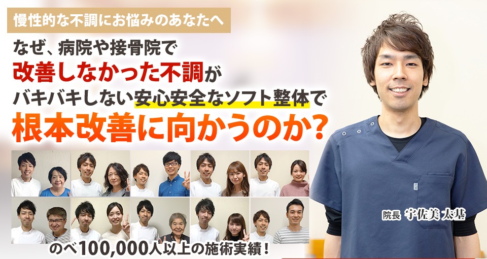 はじめまして。 ソフト整体 中央カイロプラクティック院宝塚代表の宇佐美です 。